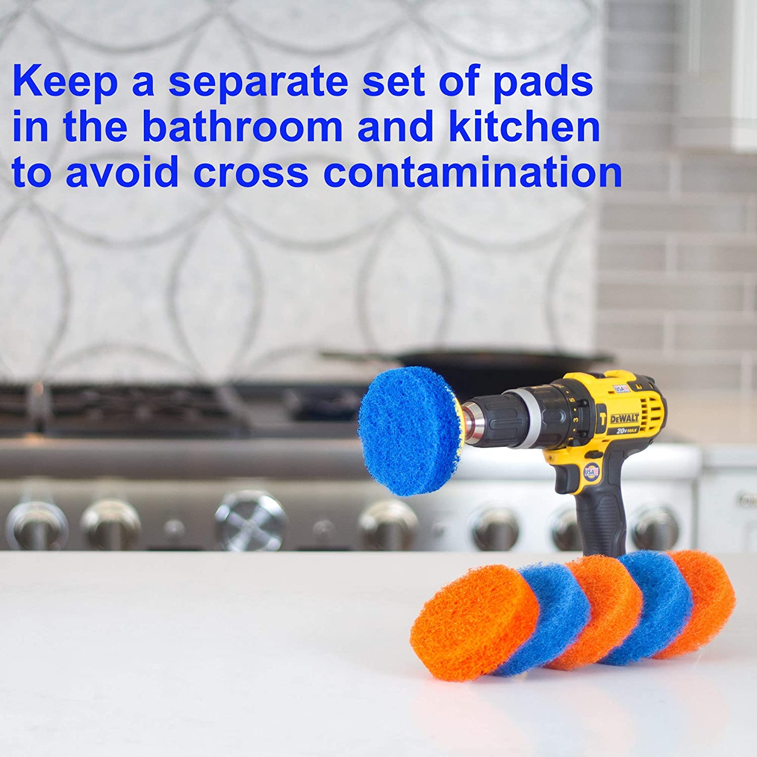 - SOFT NYLON PADS. These same nylon pads are used to clean your dishes. Easy to install and replace. Keep one set in your bathroom, kitchen, and garage to avoid cross contamination. Velcro backing secures the pad on edges, corners, and uneven surfaces.